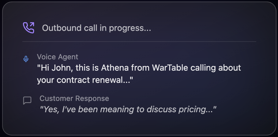 Once WarTable's intelligence layer identifies bottlenecks, our AI agents automatically take action—making calls, executing workflows, sending notifications, and ensuring follow-through.
