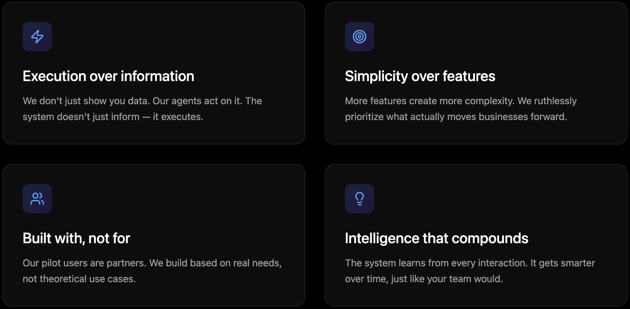 We’re not trying to replace your tools. We’re creating the intelligence layer on top of them — the nervous system that connects everything and makes it all work together.